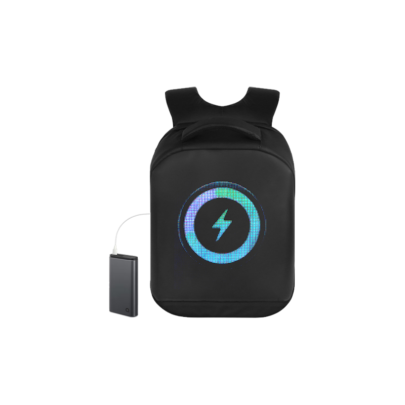 Ledback HD krever en standard ekstern USB-A-powerbank (ikke inkludert). LED-skjermen har et maksimalt strømforbruk på 15 W, noe som betyr at du trenger en powerbank med en utgang på for eksempel 5 V/3 A (5 V * 3 A = 15 W) eller 9 V/2 A (9 V * 2 A = 18 W). Størrelsen/kapasiteten til en powerbank varierer vanligvis mellom 5000-20 000 mAh. Velg batteristørrelse etter dine behov. En større powerbank gir deg mer tid mellom ladinger.
